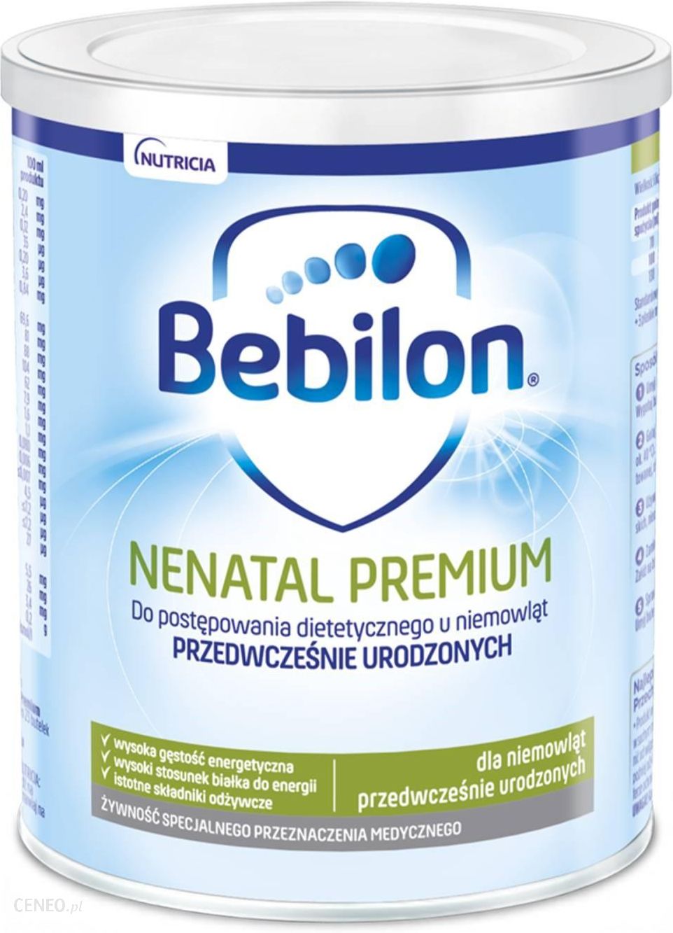 Opis produktuBebilon Nenatal Premium z Pronutra to mleko początkowe przeznaczone dla niemowląt przedwcześnie urodzonych z małą masą ciała. Mleko początkowe Bebilon Nenatal zawiera unikalną kompozycję Pronutra, stanowiącą mieszankę oligosacharydów (GOS/FOS) oraz nienasyconych kwasów tłuszczowych DHA z grupy Omega-3.ZastosowanieDo postępowania dietetycznego u niemowląt przedwcześnie urodzonych z małą masą ciała.Zalecane spożycieProdukt należy stosować pod nadzorem lekarza i według jego zaleceń. Do stosowania doustnego, lub przez zgłębnik.Sposób użycia Środek należy dawkować zgodnie z zaleceniami lekarza. Wygotuj butelkę i smoczek w wodzie przez 10 minut.Gotuj świeżą wodę pitną przez 5 minut; pozostaw do schłodzenia (do około 20°C).Wlej dokładną ilość uprzednio przygotowanej ciepłej wody do wygotowanej butelki.Odmierz dokładną ilość płaskich, nieubitych miarek produktu.Zamknij butelkę i potrząśnij do całkowitego rozpuszczenia proszku.Załóż na butelkę wygotowany smoczek.Sprawdź temperaturę produktu wewnętrzną stroną przegubu dłoni.