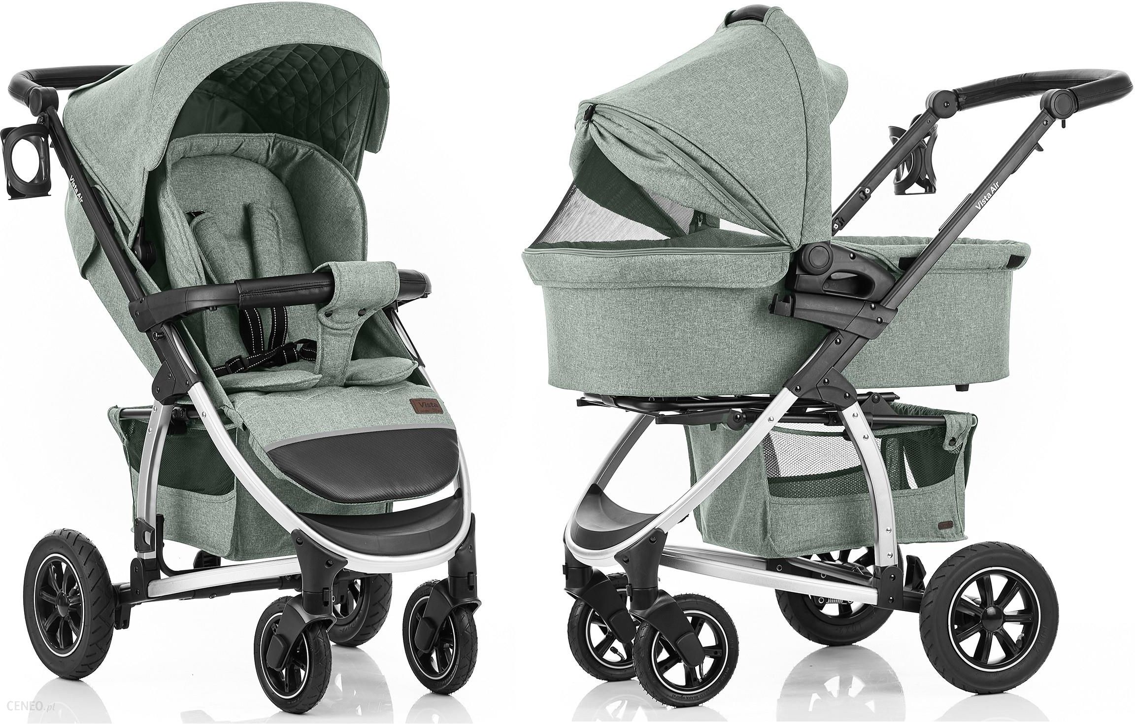 Nadmuchiwane koła sprawiają, że spacery są jeszcze przyjemniejsze o każdej porze roku. Zaletą Vista zawsze była właściwa równowaga między wytrzymałością konstrukcji ramy a łatwością obsługi wózka. Należy pamiętać, że tkaninę można zdejmować i prać.