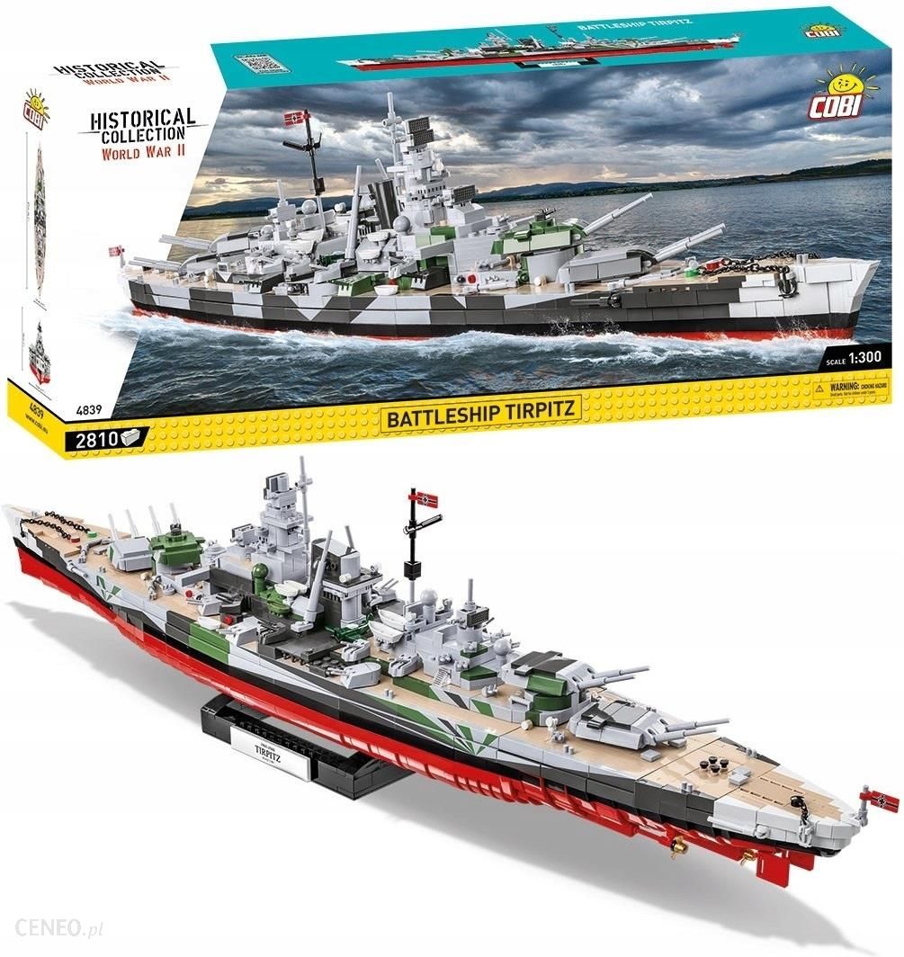 NIEMIECKI PANCERNIKBATTHLESHIP TIRPITZ4839ODKRYJ WYJĄTKOWY ZESTAW HISTORYCZNYCH KLOCKÓW COBI Z SERII WORLD WAR II!Tirpitz to niemiecki pancernik z okresu II wojny światowej, zwodowany 1 kwietnia 1939. To bliźniaczy okręt pancernika „Bismarck” i największa jednostka Kriegsmarine w latach 1941–1944. Swoją gotowość bojową osiągnął we wrześniu 1941. Został zatopiony 12 listopada 1944 w pobliżu norweskiego Tromsø przez brytyjskie lotnictwo.NIEZWYKŁE ODWZOROWANIE!Model okrętu stworzony przez firmę COBI został wyprodukowany w skali 1:300. Posiada blisko 2810 elementów i ma aż 87 cm długości. Dzięki zastosowaniu najnowszych dostępnych elementów oraz zaawansowanych technik konstrukcyjnych model możliwie wiernie oddaje proporcje historycznego okrętu i zachowuje jego wszystkie istotne elementy, w tym także oryginalny, bardzo charakterystyczny kamuflaż. Posiada liczne ruchome części.CECHY ZESTAWU:2810 wysokiej jakości elementów,wyprodukowane w UE przez firmę z ponad 20-letnią tradycją,spełniają normy bezpieczeństwa dotyczące produktów dla dzieci,w pełni kompatybilne z innymi markami klocków konstrukcyjnych,klocki z nadrukami nie odkształcają się i nie bledną w czasie zabawy czy pod wpływem temperatury,czytelna i intuicyjna instrukcja oparta na rysunkach i ikonach,skala modelu 1:300.SPECYFIKACJA ZESTAWU:Producent: COBISeria: World War IIKod producenta: 4839Wiek dziecka: Od 12 latPłeć dziecka: Dla ChłopcówIlość elementów: 2810