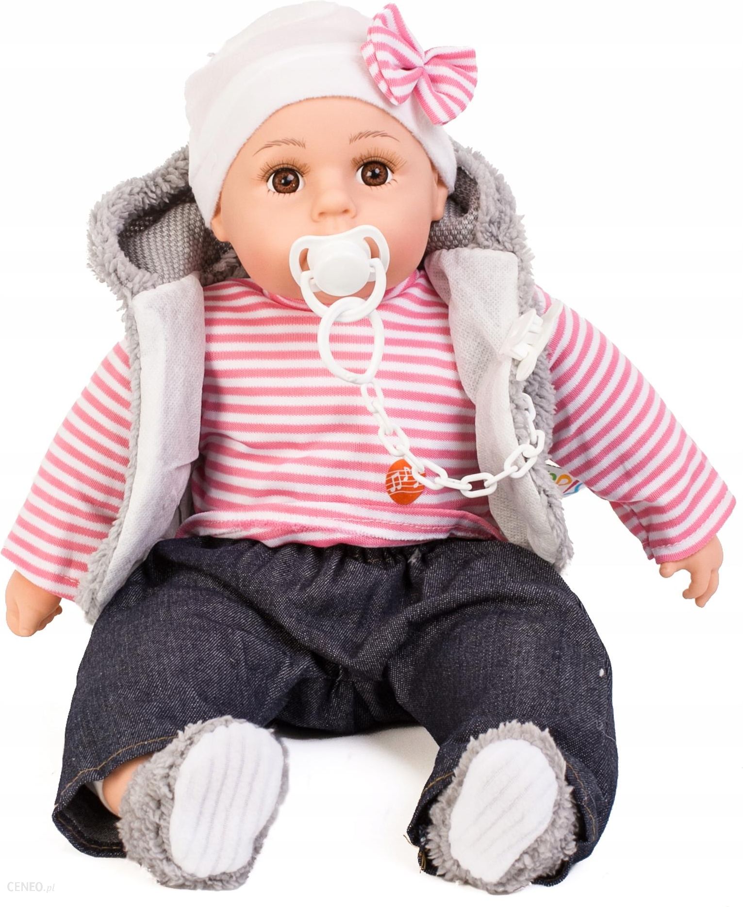 LALA BOBAS, KTÓRA ŚPIEWA I MÓWI PO POLSKU + SMOCZEKŚliczna laleczka marki DORIS o słodkiej buzi – wygląda jak prawdziwe dziecko. Można ją przytulać, opiekować się nią i wozić w wózku dla lalek.Ubrana jest w mięciutkie kolorowe ubranko, w zestawie razem ze skarpetkami i czapeczką. Ubranko z łatwością można zdjąć i wyprać dzięki czemu laleczkę łatwo utrzymać w czystości. Laleczka ma wesołą, słodką minkę i duże piękne oczka.Zabawka jest interaktywna – wydaje dźwięki, dzięki czemu zabawa jest jeszcze bardziej atrakcyjna dla dziecka. Moduł grający znajduje się w brzuszku w zapinanej na rzep kieszonce, dzięki czemu jest do niego łatwy dostępGłowa, ręce oraz nogi wykonane są z gumy, przymocowane do wypychanego miękkiego tułowia.Lalka wykonana z ogromna starannością z bardzo dobrej jakości materiałów.Wielkość lalki: ok. 45 cm.PO NACIŚNIĘCIU NA BRZUSZEK BOBAS ŚPIEWA FRAGMENTY PIOSENEK:Aaa, kotki dwa;Jadą, jadą misie;Zuzia lalka nieduża;Wlazł kotek na płotek;Stary niedźwiedź mocno śpi;ORAZ MÓWI:Weź mnie na rączki;Zaśpiewaj ze mną;Pobaw się ze mną;Przytul mnie;Kocham Cię;DO KAŻDEJ LALECZKI DOŁĄCZAMY UROCZY SMOCZEK Z KLIPSEM W KSZTAŁCIE MISIA.Firma DORIS od lat z powodzeniem zajmuje się sprzedażą zabawek. Cieszy się dużym zaufaniem na rynku i zyskała wielu zadowolonych i lojalnych Klientów. Marka Doris to gwarancja dobrej ceny w stosunku do wysokiej jakości.