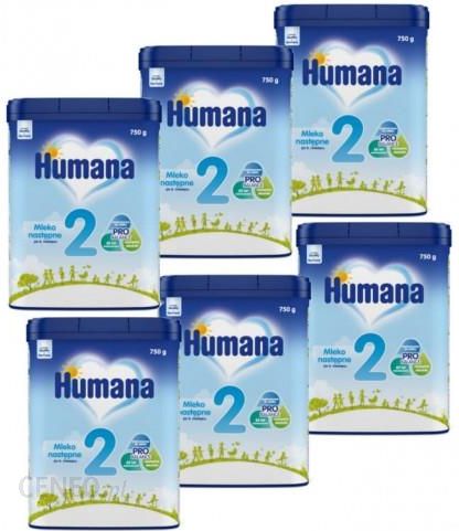 Humana 2 mleko następneOd 6. miesiąca życia Dla zaspokojenia potrzeb żywieniowych Twojego maleństwaTwoje dziecko rośnie z dnia na dzień, staje się bardziej aktywne i zaczyna odkrywać pokarm w formie stałej. Humana 2 zawiera wyłącznie laktozę jako jedyne źródło węglowodanów i aby wspomóc rozwój dziecka, nasze mleko jest wzbogacone wszystkim niezbędnymi składnikami ożywczymi w ilościach dostosowanych do wieku:- DHA (kwas dozaheksagenagenowy) – spożycie przyczynia się do prawidłowego rozwoju wzroku u niemowląt do 1 miesiąca życia (korzystny efekt uzyskuje się przy dziennym spożyciu 100 mg DHA- GOS (galaktooligosacharydy) – błonnik pokarmowy- ALA (kwa alfa-linolenowy) – niezbędny kwas tłuszczowy omega-3 wspierający rozwój poznawczy dziecka- Witamina C ważna dla układu odpornościowego- NukleotydyPro Balance to nasza obietnica dla Ciebie i Twojego dziecka, która polega na dostarczeniu dziecku wszystkich niezbędnych składników odżywczych na bazie ponad 65-letniego doświadczenia w dziedzinie nauki i badań. Karmienie piersią to najlepsza metoda żywienia dla Twojego dziecka. Skonsultuj się z pediatrą lub położną, jeśli chcesz podawać dziecku mleko początkowe. Skład:Odtłuszczone mleko, odmineralizowana serwatka w proszku, oleje roślinne (palmowy, rzepakowy, słonecznikowy), maltodekstryna, syrop galaktooligosacharydowy (z mleka), laktoza, syrop glukozowy, węglan wapnia, emulgator: lecytyna sojowa, sole wapniowe kwasu ortofosforowego, chlorek potasu, cytrynian sodu, zestaw witamin [witamina C, niacyna, kwas pantotenowy, witamina E, witamina B6, witamina A, tiamina (witamina B1), ryboflawina (witamina B2), kwas foliowy, witamina K1, biotyna, witamina D3, witamina B12], cytrynian potasu, L-tyrozyna, węglan magnezu, tauryna, mleczan żelazawy, L-tryptofan, tlenek cynku, siarczan miedzi, siarczan cynku, jodan potasu, siarczan manganu, selenian sodu. Masa netto: 6x750g Termin ważności produktu nie jest krótszy niż 12 miesięcy.