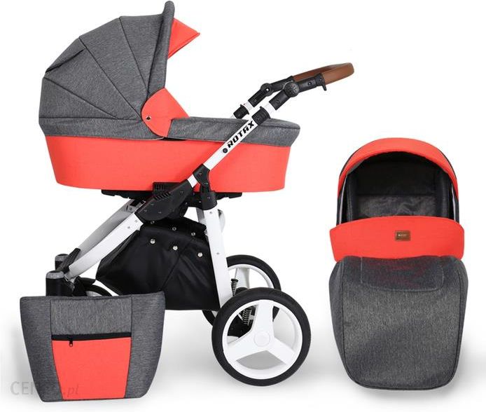 Kunert Rotax Wózek Głęboko-Spacerowy Szary Len + Pomarańcz Biała Rama Koła Żelowe