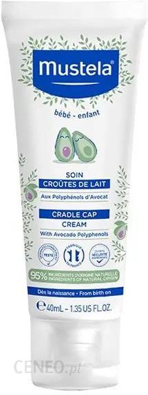 MUSTELA KREM NA CIEMIENIUCHĘ 40mlMUSTELA Krem na ciemieniuchę służy do usuwania ciemieniuchy w bezpieczny dla dziecka sposób i zapobiegania nawrotom.DZIAŁANIE:KREM NA CIEMIENIUCHĘ: Posiada oczyszczający aktywny składnik pochodzenia naturalnego, pozyskiwany z awokado: pomaga on zmniejszyć produkcję sebum by uniknąć pojawienia się ciemieniuchy. Zawarty olej z ogórecznika nawilża skórę by wspomóc usuwanie łusek. Łagodzi świąd i uczucie dyskomfortu dziecka dzięki właściwościom nawilżającym. Szybko usuwa ciemieniuchę. Zapobiega nawrotom ciemieniuchy redukując nadmiar sebum.SKŁAD:KREM NA CIEMIENIUCHĘ: AQUA/WATER/EAU, HYDROGENATED POLYDECENE, PROPANEDIOL DICAPRYLATE, GLYCERIN, DI-C12-13 ALKYL MALATE, POTASSIUM CETYL PHOSPHATE, CETYL ALCOHOL, BUTYL AVOCADATE, BORAGO OFFICINALIS SEED OIL, CAPRYLOYL GLYCINE, SCLEROTIUM GUM, 1,2-HEXANEDIOL, ALOE BARBADENSIS LEAF JUICE POWDER, CAPRYLYL GLYCOL, SODIUM BENZOATE, XANTHAN GUM, SODIUM HYDROXIDE, PROPYL GALLATE.SPOPSÓB UŻYCIA:Nakładaj na skórę pokrytą ciemieniuchą dziecka delikatnie masując. Pozostaw preparat na główce dziecka na całą noc, a następnie zmyj krem przy użyciu Szamponu w piance dla niemowląt MustelaPOJEMNOŚĆ: 40 ml