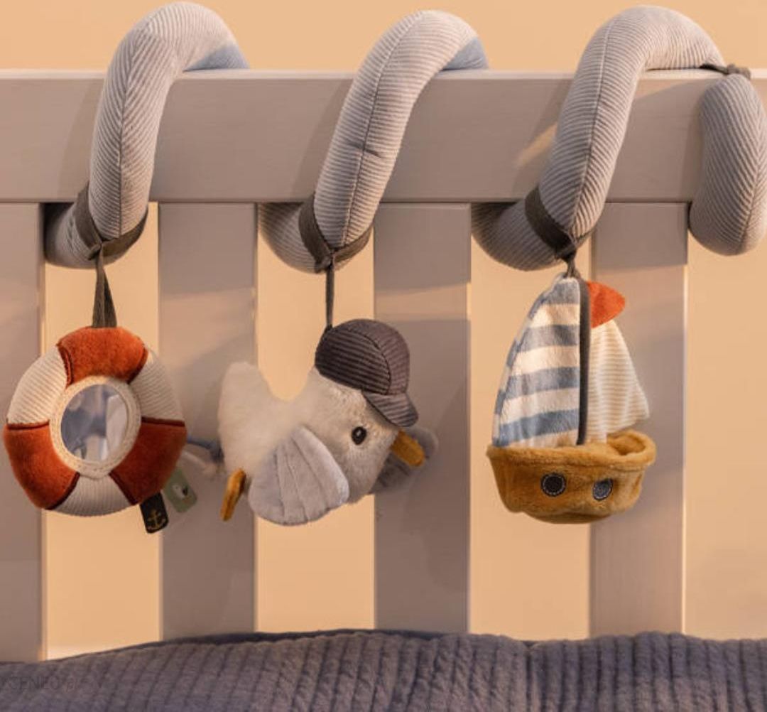 Spiralka sensoryczna Little Dutch z kolekcji Sailors Bay. Spiralka sprawdzi się idealnie jako zabawka dla malucha w łóżeczku, gondoli lub foteliku samochodowym. Pozwala stymulować koordynację wzrokową malucha, pomaga mu poznawać różne faktury materiału oraz przez swoje różnorodne kształty potrafi zaciekawić go na długie godziny.