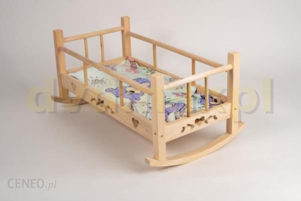 Kołyska z drewna ,dno tkaniana we wzorek. Wysokość / Długość / Szerokość: 27cm / 53cm / 27cmPościel w komplecie.
