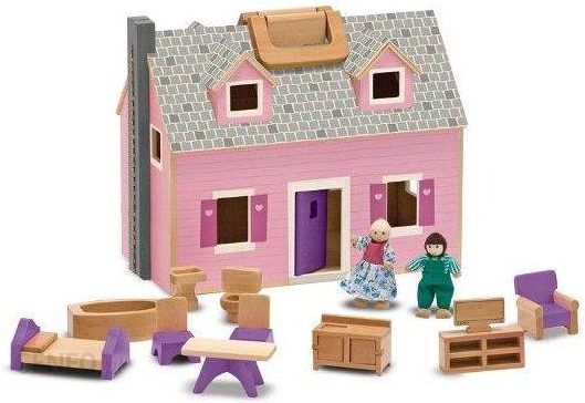 Drewniany Domek dla Lalek – Melissa & Doug 13701Domek dla lalek to marzenie każdej małej dziewczynki. Ten piękny kolorowy domek z pewnością okaże się idealnym mieszkaniem. Domek wyposażony jest w mebelki oraz 2 lalki, posiada również uchwyt, który ułatwia przenoszenie budynku z miejsca na miejsce.Wysokość produktu wynosi 27 cm.Zestaw ten zachęci dziecko do zabawy w odgrywanie ról oraz zapewni wiele frajdy podczas zabawy. Zestaw wykonano z wysokiej jakości materiałów, z zachowaniem dbałości o najmniejsze szczegóły. Dzięki temu produkt odznacza się wysoką jakością, co sprawia, że można cieszyć się zabawą przez długie lata.Ilość elementów: ok. 14Wiek dziecka: 3+Wymiary opakowania: 32 cm x 27 cm x 17 cm