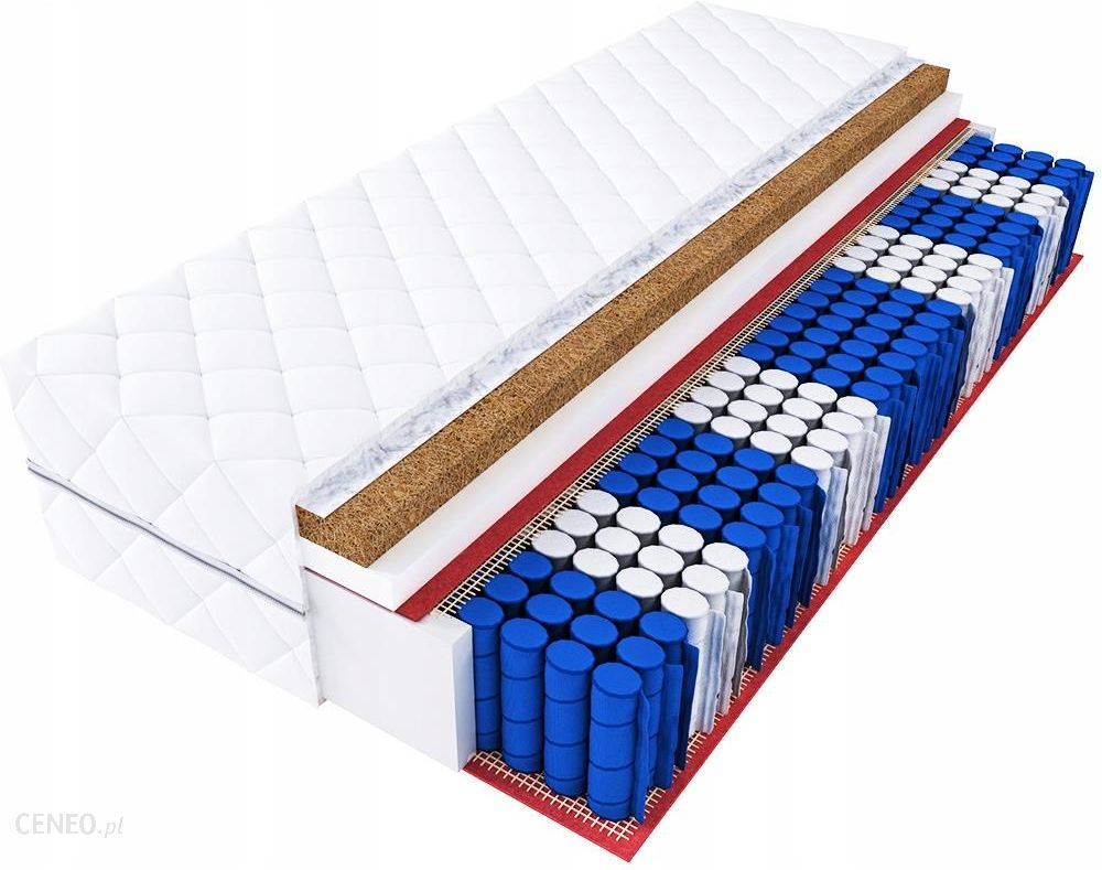 Materac MARTINRozmiar: 80×180 | Wysokość: 15 cm | Twardość: H3Wnętrze materaca:Pokrowiec pikowany PREMIUM o podwyższonej wytrzymałości jest wykonany z materiału hypoalergicznego.Wszyty zamek błyskawiczny daje możliwość zdejmowania go. Dzięki temu jest łatwy do utrzymania w czystości.Owata 100gr wszyta w pokrowiec nadaje naszemu materacowi puszystości, miękkości oraz sprężystości o właściwościach antyalergicznych.Warstwa kokosu jest w 100% surowcem naturalnym wykonanym z włókien orzecha kokosowego. Powoduje ona usztywnienie materaca oraz działa antygrzybicznie, antybakteryjnie oraz absorbuje wilgoć (pot). Kokos jest również materiałem nie podatnym na odkształcania wynikające z używania materaca oraz poprawia cyrkulację w materacu..Pianka poliuretanowa wysokiej jakości pianka o rozbudowanej gęstości materiału oraz zwiększonej odporności na pozostawanie odkształceń.Filc oddziela sprężyny od wkładu. Naturalny filc wydłuża żywotność materaca.Sprężyny kieszeniowe 9-strefowe – system kieszeniowy charakteryzuje się tym, iż każda ze sprężyn umieszczona jest w osobnej kieszonce, co powoduje że każda pracuje osobno niezależnie od drugiej. Taka praca eliminuje efekt wyginania się dużej powierzchni materaca przy nacisku na jego małą powierzchnię. Materace typu kieszeniowego są to tzw. „CICHE MATERACE”, ponieważ sprężyny zamknięte w osobnych kieszonkach nie stykają się ze sobą i nie wywołują niepotrzebnych dźwięków.Klej używany w czasie produkcji materacy jest w 100% bezpieczny dla naszego organizmu.Kolory pianek przedstawionych oraz wzory pokrowca na zdjęciu poglądowym mogą się różnić, jednak właściwości materaca pozostają bez zmian.9 strefowe sprężyny kieszenioweSystem 9-strefowy charakteryzuje się tym, iż każda ze sprężyn umieszczona jest w osobnej kieszonce materiału. Sprężyny nie są połączone ze sobą, co powoduje, że każda pracuje osobno, niezależnie od drugiej. Taka praca eliminuje efekt wyginania się dużej powierzchni materaca przy nacisku na jego małą powierzchnie. Śpiąc na materacu ze sprężynami kieszeniowymi wiercenie i obracanie się drugiej osoby nie będzie dla Państwa odczuwalne. Także różnica wagi pomiędzy dwiema osobami nie będzie miała znaczenia, co w przypadku materacy ze sprężyną standardową typu bonell powoduje, iż osoba lżejsza zsuwa się na osobę cięższą. Materace typu kieszeniowego są to tzw. „CICHE MATERACE”, ponieważ sprężyny zamknięte w osobnej kieszonce nie stykają się ze sobą i nie wywołują niepotrzebnych dźwięków.Pokrowiec pikowany PREMIUMPokrowiec o podwyższonej wytrzymałości jest wykonany z materiału hypoalergicznego. Wszyty zamek błyskawiczny daje możliwość zdejmowania go. Dzięki temu jest łatwy do utrzymania w czystości.UWAGA !!!Szanowny Kliencie, prosimy o rozważne zakupy i dokładne zwymiarowanie łóżka do którego materac będzie zastosowany.Jako producent materacy nie ponosimy kosztów spedycyjnych powstałych ze względu na błąd pomiarowy klientów.Materace wysyłane do Państwa są składane w pół, by ułatwić dostawę oraz obniżyć koszty wysyłki do koniecznego minimum.Materace mogą posiadać odkształcenia powstałe w trakcie transportu, należy wtedy rozłożyć materac na stelażu łóżka pozostawiając go na okres od 48 do 72 godzin w tym czasie odzyska on swoje pełne właściwości i kształt.Materace pakujemy w kartony by zniwelować uszkodzenia w trakcie transportu.Pianki użyte w produkcji materacy są materiałami o wysokim współczynniku ściśliwości i sprężystości, dlatego jako producent materacy zastrzegamy sobie prawo do tolerancji dodatniej i ujemnej + / – 2% na szerokości, długości oraz wysokości.