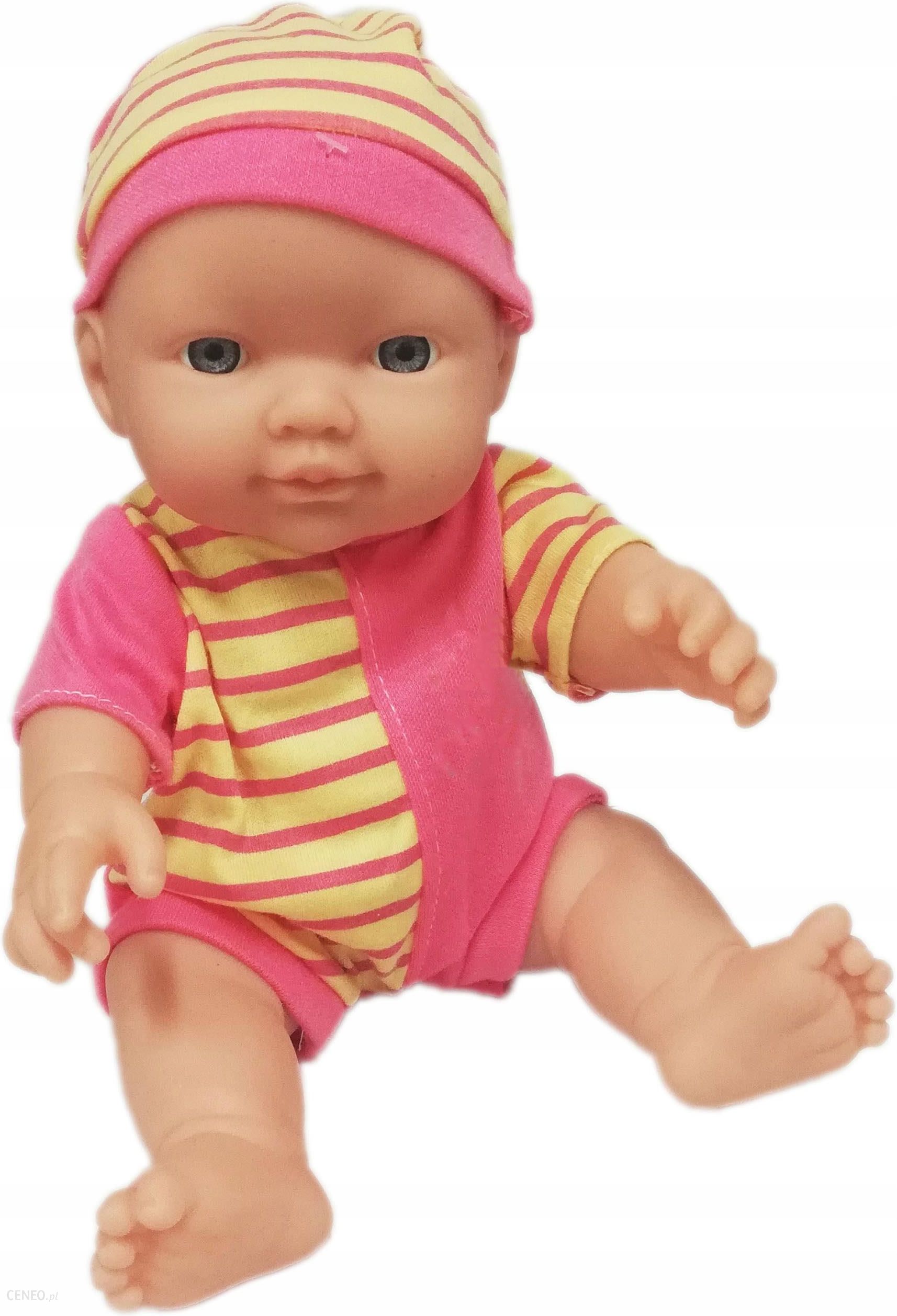 LALKA BOBASUbrana jest w zapinane z tyłu na rzep ubranko i czapeczkę.Lala śmieje się, płacze i gaworzyCała wykonana jest z gumy.Nie zamyka oczu.Rączki, nóżki i główka są ruchome.Długość lalki to 29cm.