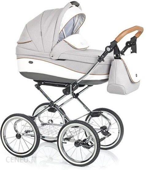 Wózek głęboko-spacerowy Roan Emma wyraźnie nawiązuje do wózków retro. Chociaż jednak swoim wyglądem konstrukcja przywołuje dawne dni, to jednak rozwiązania i materiały użyte do stworzenia wózka są jak najbardziej współczesne.Wraz z gondolą otrzymujesz miękki materacyk, którego rolą jest zapewnienie twojemu maluszkowi komfortu podczas tych krótszych jak i tych dłuższych spacerów. Niezależnie, czy świeci słońce, czy też wieje wiatr – z wózkiem Roan Emma zawsze możesz zabezpieczyć swoje maleństwo przed kaprysami pogody. Przed zbyt dużą dawką słońca osłoni malca duża, rozkładana budka z dodatkowym daszkiem przeciwsłonecznym. Jeśliby z kolei za oknem zaczęło wiać, twoja pociecha nawet tego nie zauważy, osłonięta przez wysokie ścianki gondoli oraz okrycie na nóżki. Dodatkowym zabezpieczeniem na wietrzne dni jest również rozkładana klapa, która z powodzeniem osłoni twoją pociechę przed zimnymi podmuchami.Gondola może nie tylko być używana w komplecie z ramą, ale również stać samodzielnie. Po co? Jej zaokrąglona podstawa pozwoli ci delikatnie bujać swoje maleństwo niczym w kołysce.Wózek głęboki jest dobry do około szóstego miesiąca życia dziecka. Jeśli twoje maleństwo zaczyna już siadać w wózku głębokim, nie czekaj jednak, aż skończy pół roku. Gondolę w kilku łatwych krokach zastąpisz siedziskiem spacerowym. Od teraz twój szkrab będzie przypięty pięciopunktowymi pasami bezpieczeństwa.Podobnie jak w przypadku gondoli, również spacerówka wyposażona została w daszek, który chroni szkraba przed atakami ze strony matki natury.Siedzisko wersji spacerowej fotelika Roan Emma możesz zamontować zarówno przodem jak i tyłem do kierunku jazdy. Dzięki temu twój maluszek może obserwować zarówno ciebie jak i otoczenie – zależnie od preferencji. Tylko pamiętaj, by przed odwracaniem wyjąć maleństwo z wózka.Także w spacerówce możesz okryć nóżki swojego maleństwa dopasowaną osłonką, która będzie skutecznie trzymać chłód na dystans. W komplecie otrzymasz także torbę na wszystkie niezbędne (i zbędne) drobiazgi. Możesz ją przypiąć do ramy wózka, lub wrzucić luzem do kosza pod wózkiem. Z powodzeniem zmieścisz w nim także zakupy lub koc czy pluszaka. Wózek głęboko-spacerowy Roan Emma jest dostępny w naszym sklepie na trzech rodzajach kół. Pamiętaj, by przed złożeniem zamówienia wybrać interesującą cię opcję.