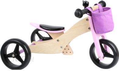 Small Foot 11611 Tricykl rowerek 2w1 różowy drewniany z możliwością regulacji siodełka w pionie i poziomie i zmiany między trzema a dwoma kołami.