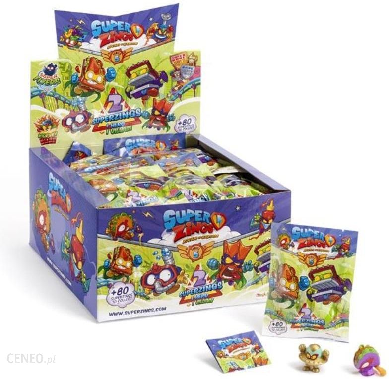 Saszetka zawiera dwie figurki SuperZing (jednego Bohatera i jednego Złoczyńcę).Do zebrania jest ponad 80 zupełnie nowych postaci z serii 5! Wśród nich można znaleźć 6 kapitanów w srebrnym kolorze, 2 Superliderów w kolorze złotym oraz wyjątkową i najtrudniejszą do znalezienia figurkę Kid Fury!SuperZings to przedmioty codziennego użytku przekształcone w Superbohaterów i Złoczyńców, którzy ścierają się ze sobą na ulicach Kaboom City.