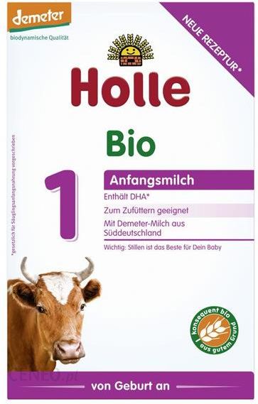 Holle Organic wzbogacone o DHA. Mleko użyte w tej formule pochodzi od krów hodowanych na biodynamicznych (Demeter) farmach w przyjaznym i odpowiednim środowisku. Mleko jest lekkostrawne, nie zawiera glutenu, przeznaczone dla niemowląt od urodzenia, idealne do stosowania jako pokarm zastępczy lub uzupełniający. Wyprodukowane zostało z zachowaniem wszystkich zasad rolnictwa ekologicznego.ZastosowanieDla niemowląt od urodzenia.Sposób przygotowaniaWygotować butelki i smoczek (3-5 minut).Przegotowaną wodę o temperaturze 50 stopni Celsjusza wlać do butelki.Dodać odmierzoną ilość mleka (według tabeli dozowania) i wsypać do butelki.Dokładnie wymieszać.Podawać w temperaturze 37 stopni Celsjusza.SkładnikiOdtłuszczone mleko**, serwatka w proszku* (częściowo pozbawiona soli mineralnych serwatka w proszku), oleje roślinne* (olej palmowy*, olej słonecznikowy*, olej rzepakowy*), maltodekstryna*, laktoza*, odtłuszczone mleko w proszku**, olej rybi***, odtłuszczone mleko w proszku*, węglan wapnia, chlorek potasu, dwuwinian choliny, chlorek sodu, L-tyrozyna, witamina C, L-tryptofan, mleczan żelaza, witamina E, siarczan cynku, witamina A, witamina D, niacyna, kwas pantotenowy, siarczan miedzi, witamina K, kwas foliowy, witamina B1, witamina B12, witamina B6, siarczan manganu, jodan potasu, selenian sodu, biotyna.*z upraw ekologicznych**z upraw biodynamicznych***zawiera DHA100g proszku zawiera:wartość energetyczna 2127kJ/508kcal; węglowodany 58,1g (w tym: cukier 45,3g, laktoza 44g), białko 10,4g Tłuszcze 26g, w tym (nasycone kwasy tłuszczowe 9,3 g, jednonienasycone kwasy tłuszczowe 11,4 g, wielonienasycone kwasy tłuszczowe 5,3 g, kwas linolowy 4607mg, kwas alfa-linolenowy 396mg, DHA 147mg;witamina A 446mcg RE, witamina D 10mcg, witamina E 13mg, witamina K 48mcg, witamina C 105mg, tiamina 0,49 mg, ryboflawina 1,4mg, niacyna 3,4mg, witamina B6 0,43 mg, kwas foliowy 90,2mcg, folian 139mcg DFE, witamina B12 1,5mcg, biotyna 14mcg, kwas pantotenowy 3,8mg;potas 597mg, chlorek 398mg, wapń 423mg, fosfor 250mg, magnez 40,5mg, żelazo 4,1mg, cynk 3,4mg, miedź 0,35mg, mangan 0,1mg, fluorek <0,07 mg, selen 21mcg, jod 114mcg, sód 213mg, cholina 172 mg, inozytol 38mg, L-Kartinina 18 mg.100ml roztworu zawiera:wartość energetyczna 281kJ/67kcal;węglowodany 7,7 g, w tym (cukry 6,0 g, laktoza 5,8 g)/ białko 1,4g, tłuszcze 3,4g w tym (nasycone kwasy tłuszczowe 1,2 g, jednonienasycone kwasy tłuszczowe 1,5g, wielonienasycone kwasy tłuszczowe 0,7g, kwas linolowy 608mg,kwas alfa-linolenowy 52mg, DHA 19,4mg);witamina A 58,9mcg RE, witamina D 1,4mcg, witamina E 1,7mg, witamina K 6,3mcg, witamina C 14mg, tiamina 0,065mg, ryboflawina 0,18mg, niacyna 0,45mg, witamina B6 0,056mg, kwas foliowy 11,9mcg, folian 18,3(mcg DFE), witamina B12 0,20mcg, biotyna 1,9mcg, kKwas pantotenowy 0,50mg;potas 78,8mg, chlorek 52,5mg, wapń 55,8mg, fosfor 33mg, magnez 5,34mg, żelazo 0,54mg, cynk 0,44mg, miedź 0,046mg, mangan 0,013mg, fluorek <0,010 mg, selen 2,8mcg, jod 15,1mcg, sód 28mg, cholina 23mg, inozytol 5mg, L-Kartinina 2,4mg.Ważne wskazówkiWłaściwa higiena, przygotowanie, rozcieńczanie, podawanie i przechowywanie są ważne przy stosowaniu mieszanki.Mieszankę należy podać zaraz po przygotowaniu.Nie należy podgrzewać pokarmu w kuchence mikrofalowej.Przestrzegaj instrukcji właściwego przygotowania.Przechowywać w chłodnym i suchym miejscu.Ten produkt jest przeznaczony do uzupełnienia diety, której podstawą jest mleko kobiece lub modyfikowane.Karmienie piersią jest najlepsze dla dziecka.Produkt jest odpowiedni jedynie dla niemowląt od urodzenia.Produkt powinien być tylko jednym z elementów zróżnicowanej diety.Preparat nie może być stosowany jako produkt zastępujący mleko kobiece w ciągu sześciu pierwszych miesięcy życia.Zawartość netto400gProducentHolle Baby FoodBaseistrasse 11CH-4125 RiehenSzwajcariaDystrybutor w PolsceVictualia SaluberEkologiczne Produkty Żywnościowe, Lidia TokarowskaAl. Prymasa Tysiąclecia 60/6201-424 Warszawa