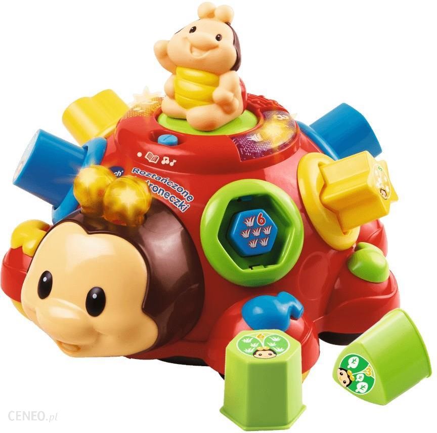 Vtech Roztańczone Biedroneczki 60477Roztańczone Biedroneczki marki VTech to edukacyjna zabawka elektroniczna, która zapozna dziecko z pierwszymi cyframi, nazwami kształtów i przedmiotów. Zamocowany przy zabawce sznurek do ciągnięcia pozwoli zabrać biedroneczki wszędzie tam, gdzie ma ochotę powędrować mały obieżyświat. Zabawka wyposażona jest w kolorowe klocki różnych kształtów, które odpowiadają odpowiednim otworom na grzbiecie Biedronki.Zabawka przeznaczona jest dla dzieci w wieku 6-36 miesięcy.